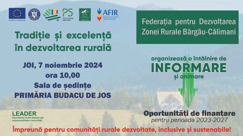 Veste buna pentru comunitățile de pe teritoriul GAL Federația pentru Dezvoltarea Zonei Rurale „Bârgău-Călimani”!