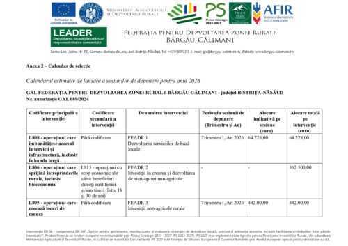 Calendarul apelurilor de selecție